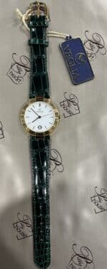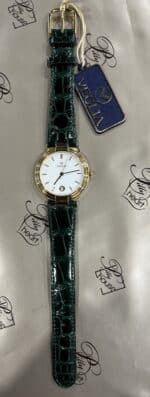 Tag: CASSA MM.34, CASSA ORO 18 KT, CINTURINO COCCODRILLO VERDE, DATARIO, FONDELLO A PRESSIONE, LEONARDO, OROLOGIO, QUADRANTE BIANCO, QUARZO, SOLO TEMPO, SWISS MADE, VETRO ZAFFIRO, WATER RESISTANT 3 ATM